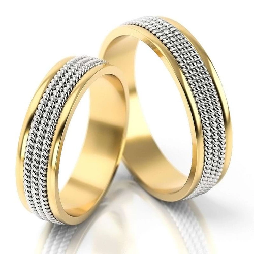 Obrączki ślubne 7mm ozdobione plecionkami dwukolorowe białe i żółte złoto próba 585