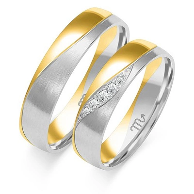 Obrączki ślubne półokrągłe 6mm z kamieniami dwukolorowe z żółtym i białym złotem próba 585