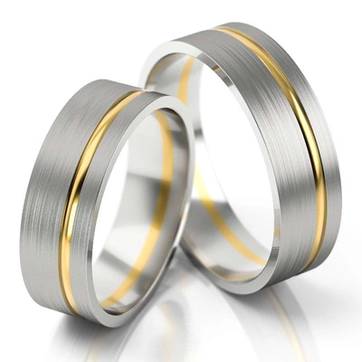 Obrączki ślubne płaskie z linią 6mm dwukolorowe białe i żółte złoto próba 585
