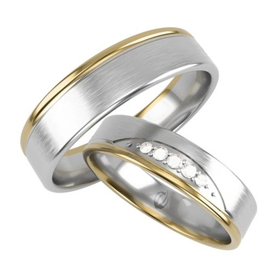 Obrączki ślubne półokrągłe 5,5mm z kamieniem dwukolorowe z żółtego i białego złota próba 585