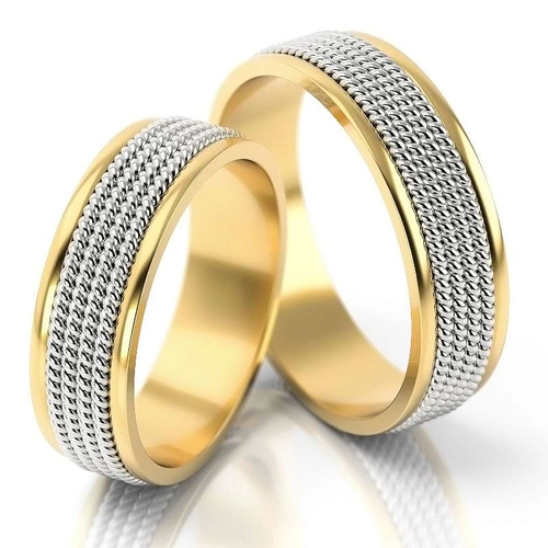 Obrączki ślubne z oryginalnym wzorem 5mm dwukolorowe białe i żółte złoto próba 585