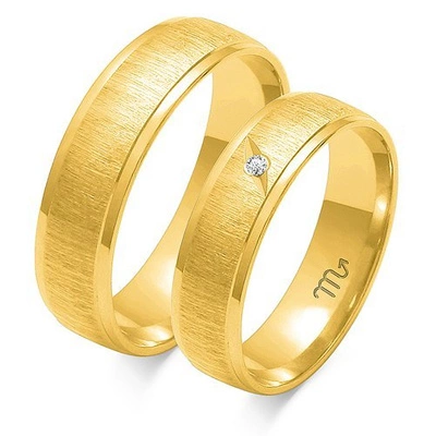 Obrączki ślubne półokrągłe matowe 5,5mm z kamieniem złoto próba 585