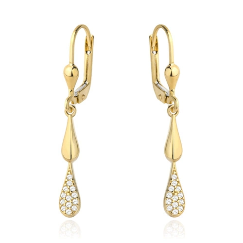 Kolczyki złota łezka w połowie wysadzana cyrkoniami