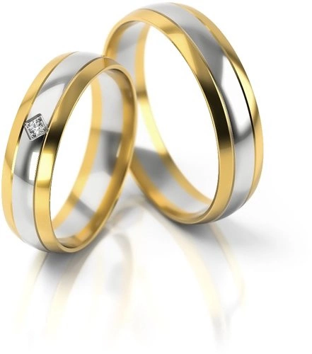 Obrączki ślubne półokrągłe z linią i kamieniem 5mm dwukolorowe białe i żółte złoto próba 585