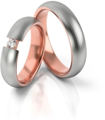 Obrączki ślubne półokrągłe z diamentem 5mm dwukolorowe białe i czerwone złoto próba 585