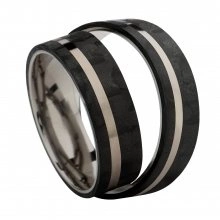 Płaskie obrączki ślubne carbonowe 6mm z tytanową linią