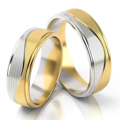 Płaskie obrączki ślubne z falą 6mm dwukolorowe białe i żółte złoto próba 585
