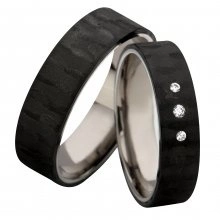 Obrączki carbonowe z tytanem i kamieniem 6mm płaskie