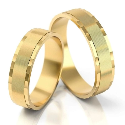 Obrączki ślubne płaskie 5mm zdobione wzorem żółte złoto próba 585