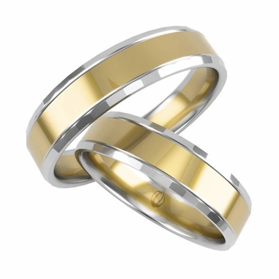 Obrączki ślubne płaskie z fazami 5mm dwukolorowe żółte i białe złoto próba 585