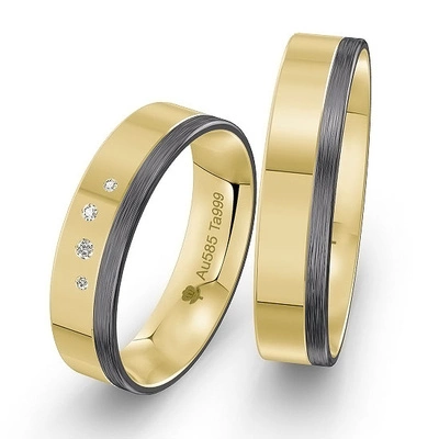 Obrączki ślubne płaskie z diamentami 4mm dwukolorowe białe i żółte złoto próba 585