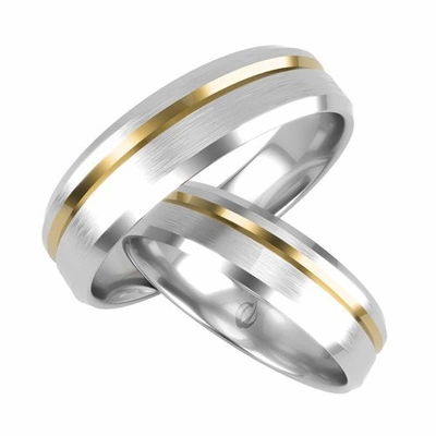 Obrączki ślubne płaskie z linią 6mm dwukolorowe białe i żółte złoto próba 585