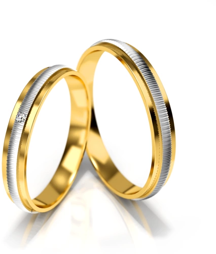 Obrączki ślubne półokrągłe 3mm zdobione dwukolorowe z żółtym i białym złotem próba 585