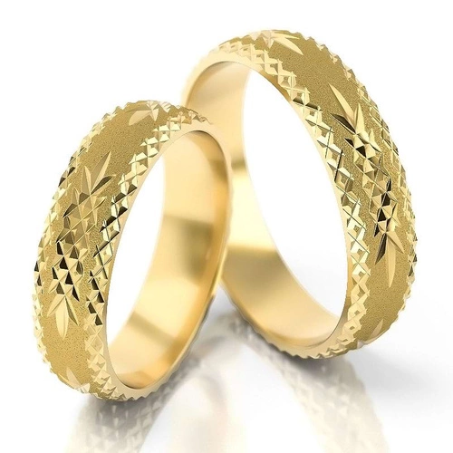 Obrączki ślubne półokrągłe 5mm ze zdobieniem żółte złoto próba 585