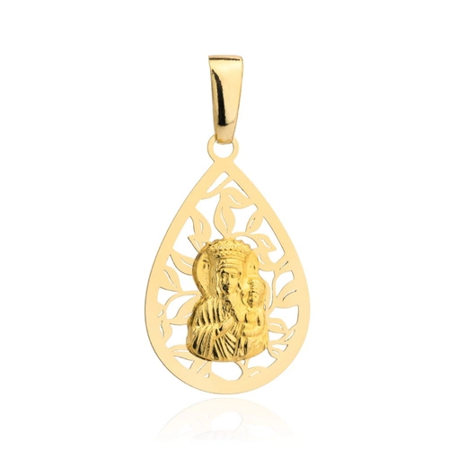 Medalik złoty Matka Boska Częstochowska w ażurowej oprawie