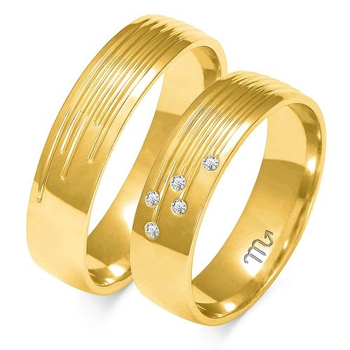 Obrączki ślubne płaskie 5,3mm zdobione liniami żółte złoto próba 585