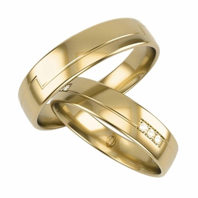 Obrączki ślubne płaskie 5mm ze zdobieniem i brylantem próba 585