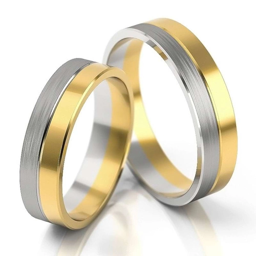Obrączki ślubne płaskie z fugami 5mm dwukolorowe białe i żółte złoto próba 585