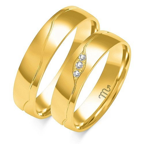 Obrączki ślubne półokrągłe z falą i kamieniem 6mm dwukolorowe złoto próba 585