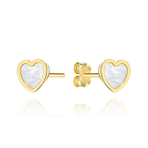 Kolczyki złote serca z masą perłową