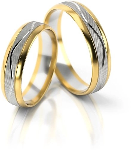Obrączki ślubne półokrągłe ozdobione wzorem 5mm dwukolorowe białe i żółte złoto próba 585