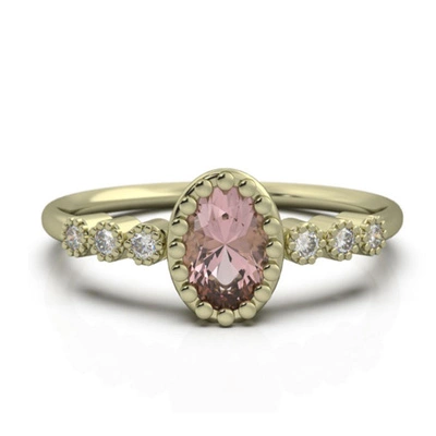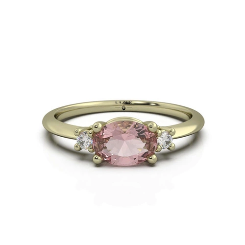 Pierścionek z morganitem i brylantami z żółtego zlota