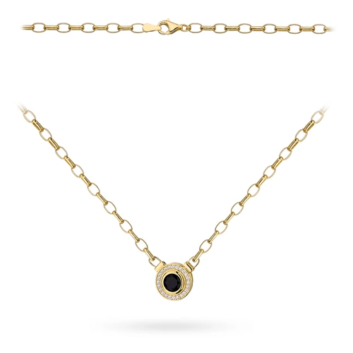 Naszyjnik złoty ogniwa z czarnym kamieniem w oprawie cyrkonii (Gramatura: 6.06)
