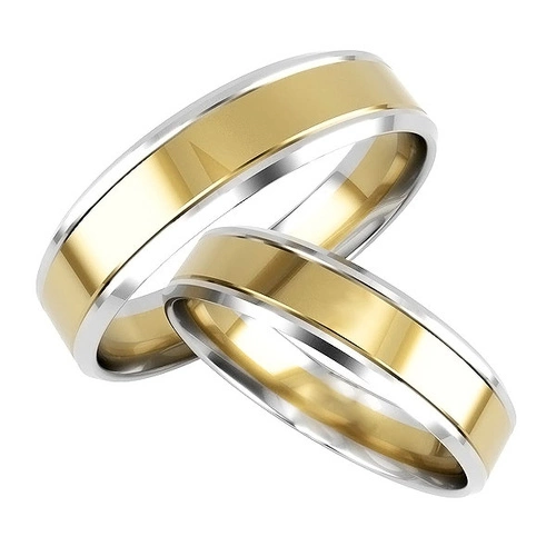 Złota obrączka 6mm dwukolorowa z białym złotem palladowym płaska fazowana