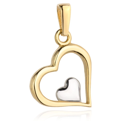 Zawieszka złoty kontur serca z pełnym serduszkiem w białym złocie