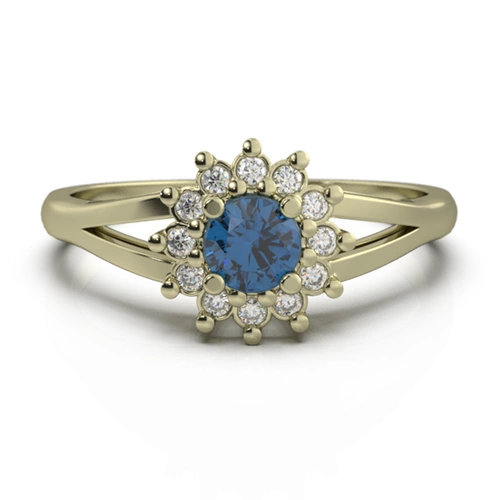 Złoty pierścionek z brylantami i szafirem