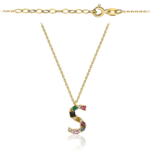 Naszyjnik złoty o splocie rolo z blaszką wysadzaną cyrkoniami (Rozmiar pr. 585: 45 cm; Gramatura: 7.81)