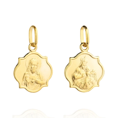 Zawieszka złota blaszka dwustronna ze zdobieniem