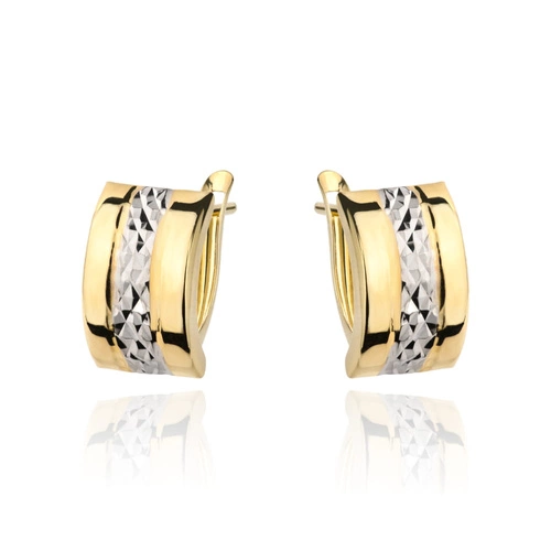 Kolczyki złote diamentowane na obu brzegach dwa kolory złota zaokrąglone