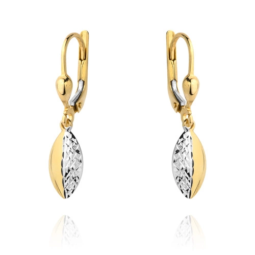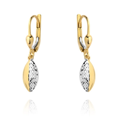 Kolczyki złote diamentowany romb w dwóch kolorach złota