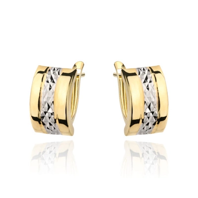 Kolczyki złote diamentowane na brzegach dwa kolory złota