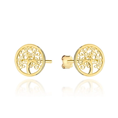 Kolczyki złote koniczynka z cyrkoniami na sztyfcie