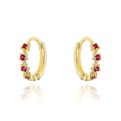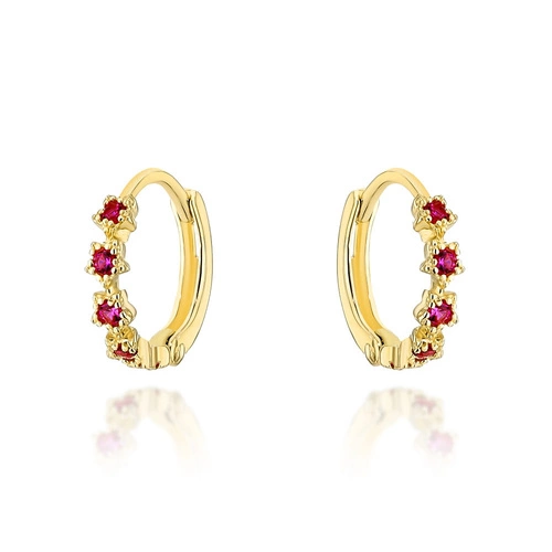 Kolczyki złote kwiatki z cyrkoniami w kolorze fuksji na kreolu