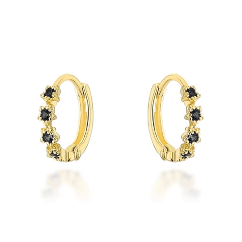 Kolczyki złote kwiatki z czarnymi cyrkoniami na kreolu
