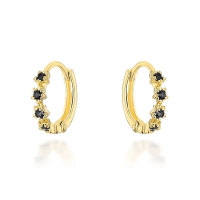 Kolczyki złote okrągłe i kółko z czarnych cyrkonii w środku