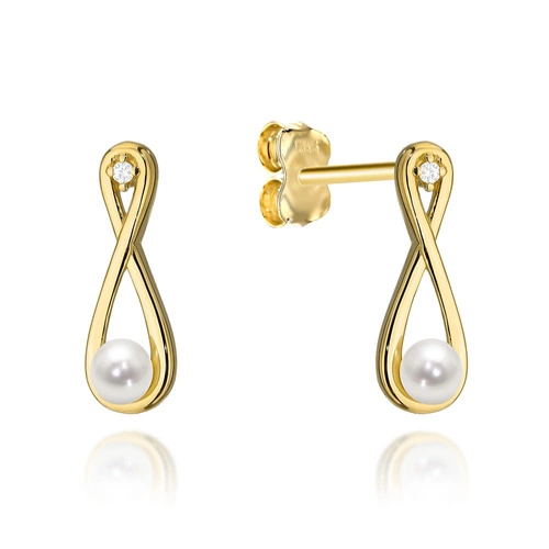 Kolczyki złote znak nieskończoności z perełką i cyrkonią
