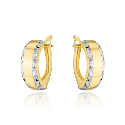 Kolczyki złote zaokrąglone z diamentowaniem w dwóch kolorach złota