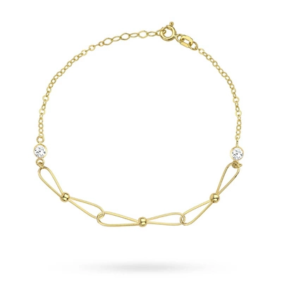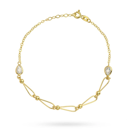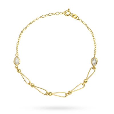 Bransoletka złote połączone kulki i łezka z białego kamienia (Gramatura: 2.23)