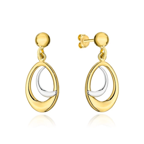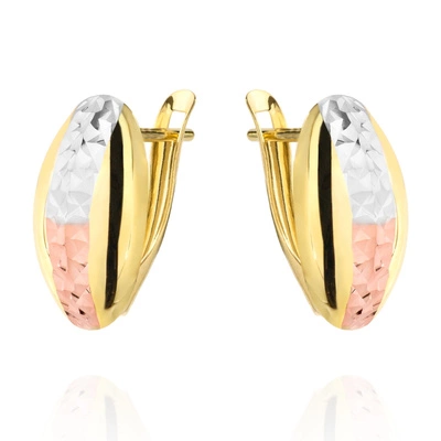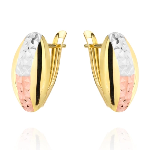 Kolczyki złote prostokąt częściowo diamentowany trzy kolory złota