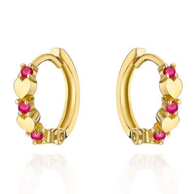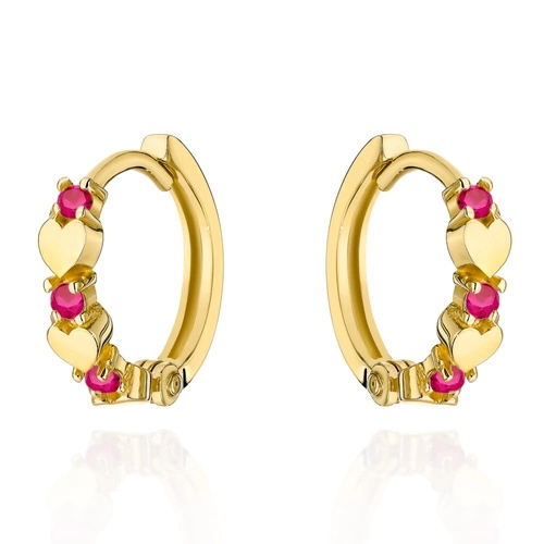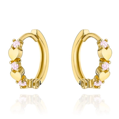 Kolczyki złote wypukłe serduszko w sercu z różowych cyrkonii