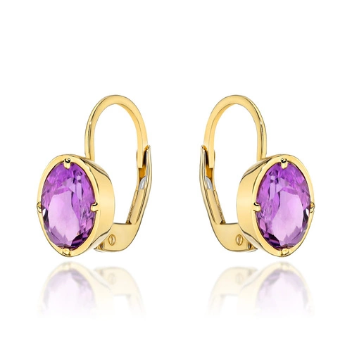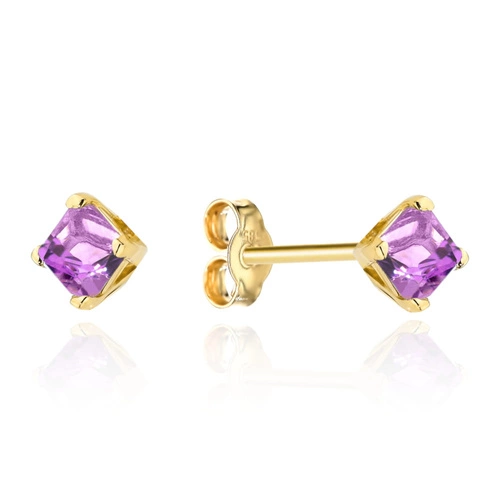 Kolczyki złote z kolekcji "COLORFUL STONE" z eleganckim zapięciem - ametyst kwadrat