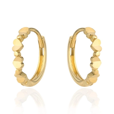 Kolczyki złote kółeczko z wiszącym gładkim sercem