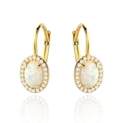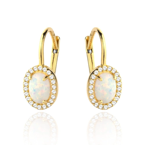 Kolczyk złoty Opal owalny otoczony cyrkoniami