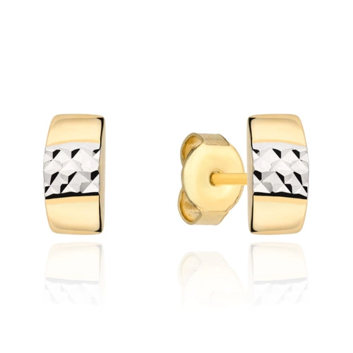 Kolczyki złote diamentowany romb w dwóch kolorach złota