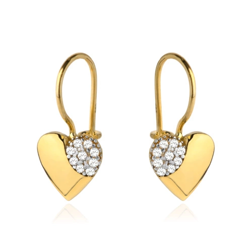 Kolczyki złote pełne serce z częścią cyrkonii