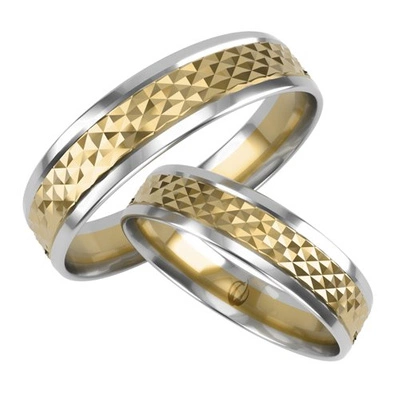 Obrączki ślubne półokrągłe 6mm z diamentowanym zdobieniem dwukolorowe złoto próba 585
